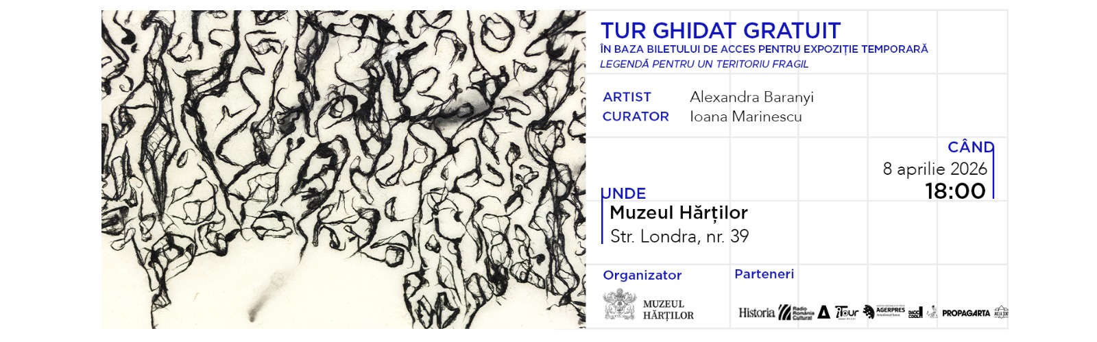 Artista Alexandra Baranyi și curatoarea Ioana Marinescu invită publicul la un tur ghidat în expoziția Legendă pentru un teritoriu fragil, miercuri, 8 aprilie, de la ora 18:00, la Muzeul Hărților. Evenimentul oferă o perspectivă aprofundată asupra luc [...]