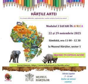 Din septembrie 2025, îi așteptăm pe copiii cu vârste de 7 – 11 ani la noi ateliere de creație în cadrul seriei Hărțile Artei. Programele sunt organizate în parteneriat cu Belladona Art. Detalii, aici.