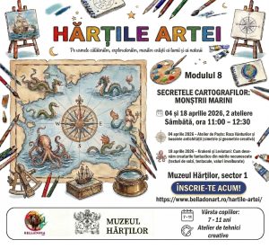 În luna aprilie, îi așteptăm pe copiii cu vârste de 7 – 11 ani la noi ateliere de creație în cadrul seriei Hărțile Artei. Programele sunt organizate în parteneriat cu Belladona Art. Detalii, aici.