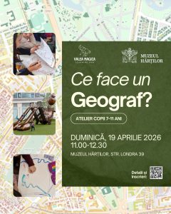 Duminică, 19 aprilie 2026, îi invităm pe copiii de 7 – 11 ani la atelierul Harta Viitorului: Ce face un geograf?, susținut de Valea Magică Learning Hub. Detalii, aici.