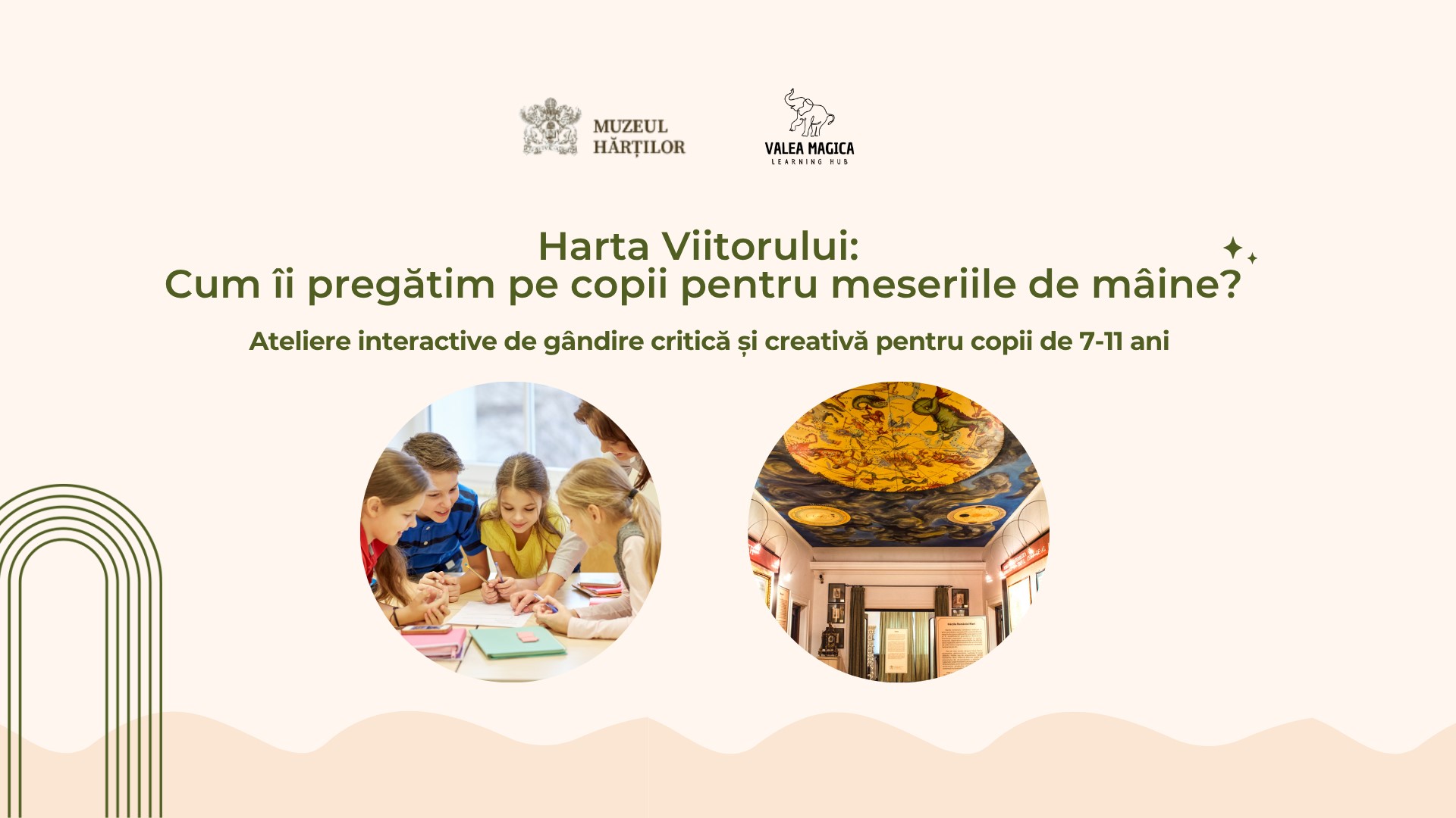 Muzeul Hărților și Valea Magică invită grupurile de copii din clasele primare să participe la atelierele de gândire critică și creativitate din seria Harta Viitorului: Cum îi pregătim pe copii pentru meseriile de mâine? Dacă ești un profesor sau părinte preocupat de viitorul copiilor într-o lume incertă, te invităm la Muzeu unde vom aborda o meserie nouă în fiecare lună. Copiii vor învăța într-un mod practic și interactiv cum să pună întrebările potrivite și să rezolve probleme specifice unei me [...]